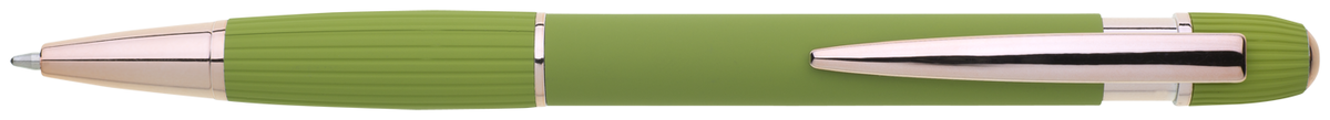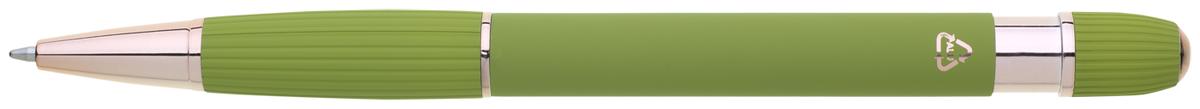 propiska z recyklovaného hliníku se soft povrchem a doplňky v růžovo-zlaté barvě. Laserované logo je lesklé, růžovo-zlaté. Náplň modře píšící. Výsledný efekt laserového značení je lesklý, v barvě doplňků.