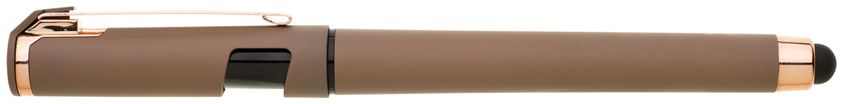 Elegantní gelové pero ROSEO SOFT GEL se soft povrchem, touch koncovkou a doplňky v růžovo-zlaté barvě. Pero má gelovou velkoobsahovou náplň, která píše modře.