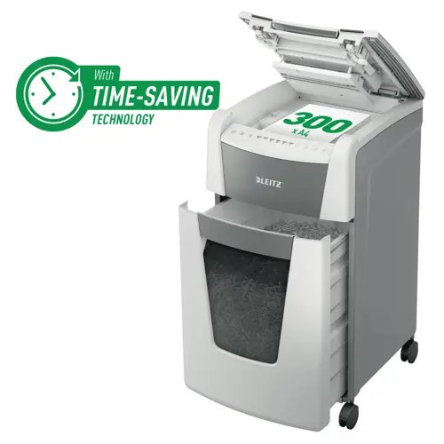 Skartovačka s plně automatickým podáváním papíru umožňuje pohodlné a bezpečné skartování dokumentů bez nutnosti ručního vkládání. Je vhodná pro všechny kanceláře a zvládne skartovat až 300 listů A4 do koše o objemu 60 l.