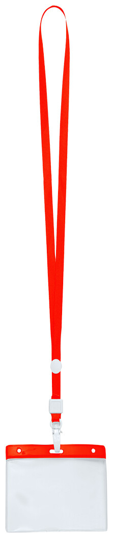 Lanyard s plastovou karabinkou a PVC držákem, polyester.