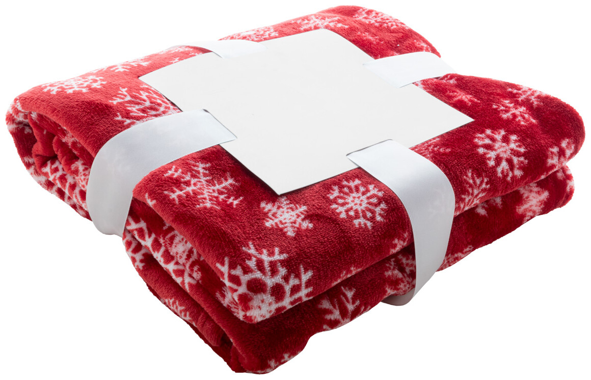 RPET flanelová fleecová vánoční deka, 260 g/m2. S potisknutelnou papírovou kartou a stuhou.