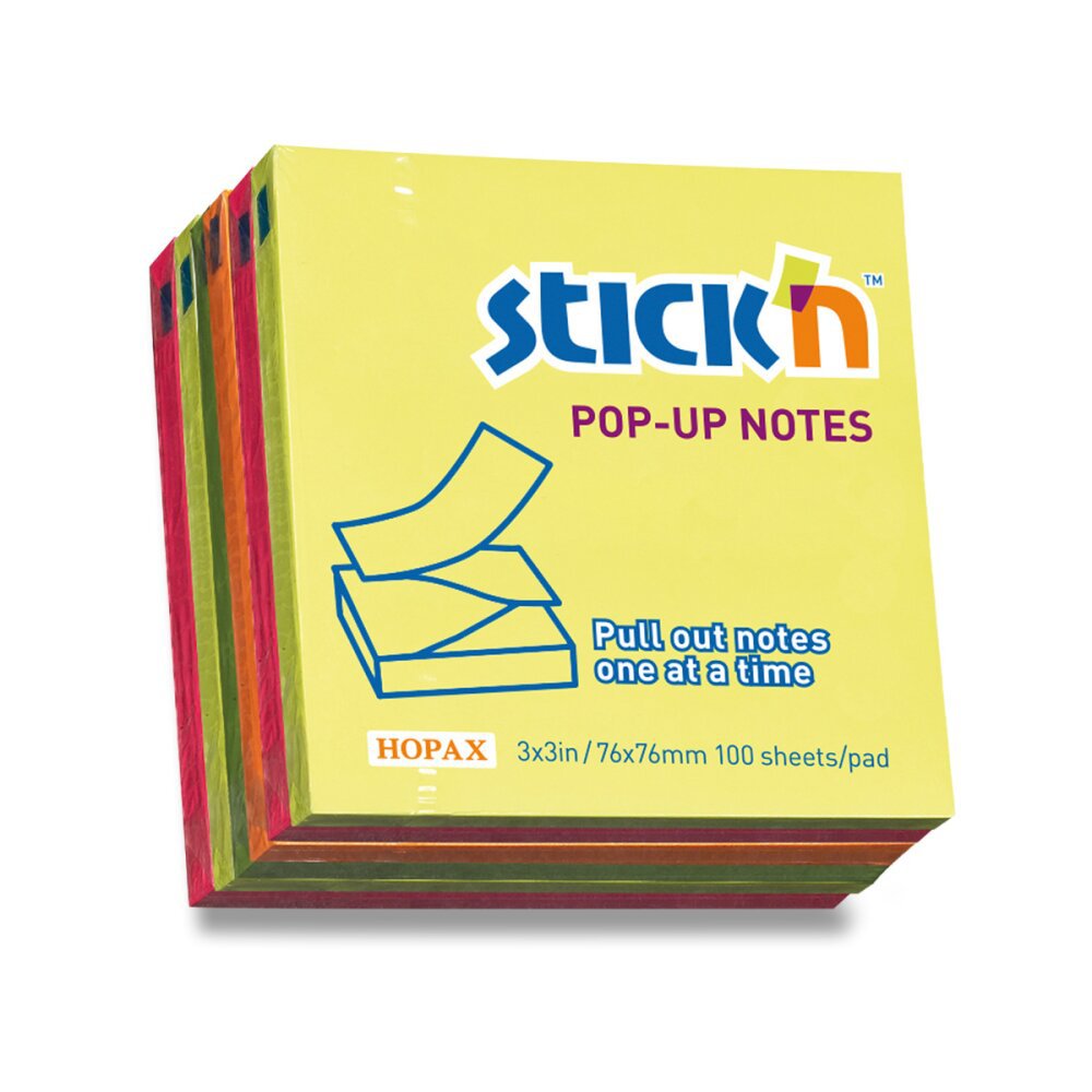 Samolepicí bloček Stick'n by Hopax POP-UP ("Z") , 76 x 76 mm, neon mix, 6 x 100 lístků