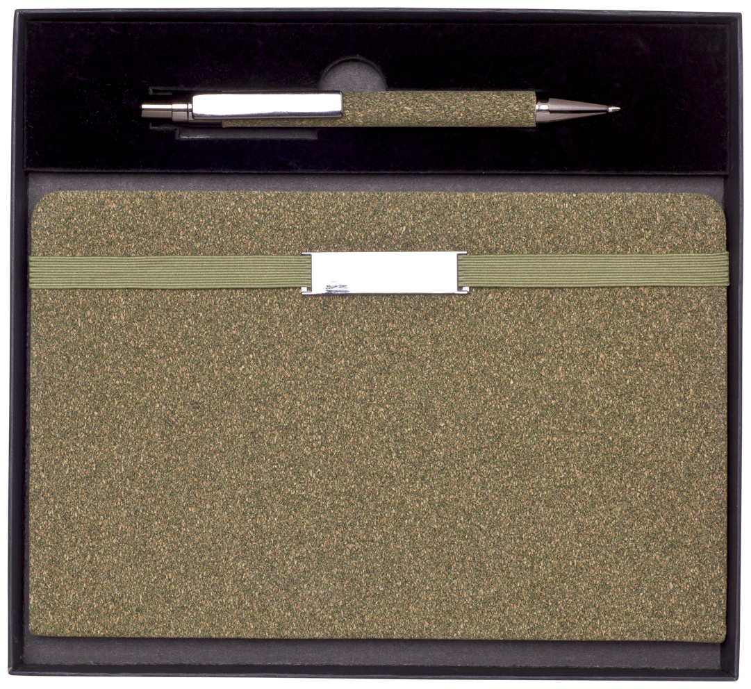TEABRO SET zápisník s propiskou v krabičce, zelená