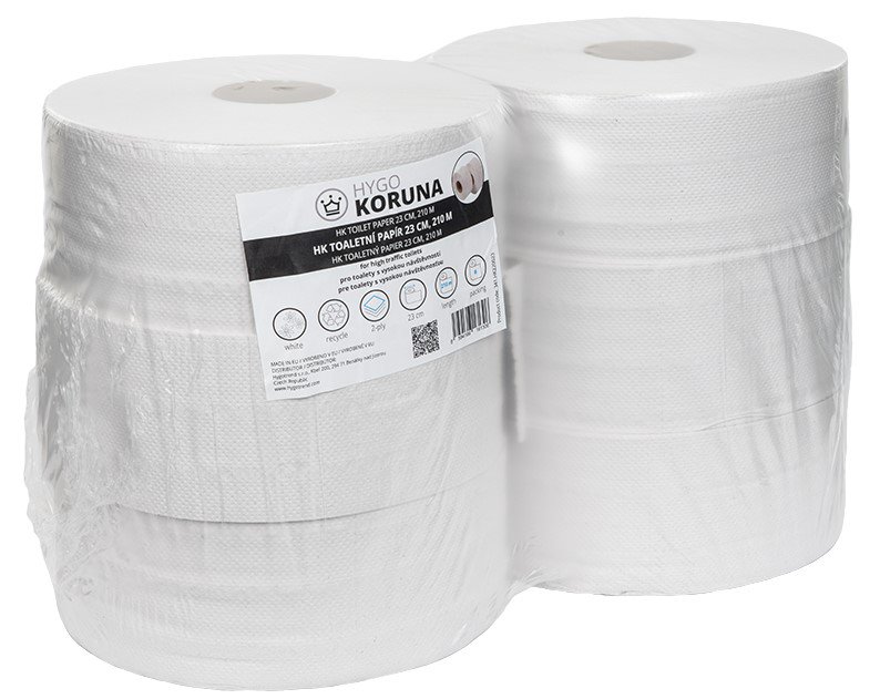 Dvouvrstvý bílý toaletní papír z recyklovaného papíru v jumbo roli. Vhodný do všech provozů. Ekonomická kvalita za dostupnou cenu.