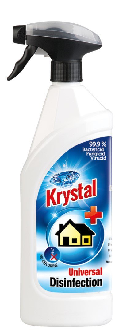 KRYSTAL 750ml, univerzální dezinfekce, s rozprašovačem je produkt, který slouží k čištění a dezinfekci různých povrchů v domácnosti. Je to tekutý prostředek bez chlóru, který má silný antibakteriální účinek a příjemnou vůni. KRYSTAL 750ml, univerzální dezinfekce, s rozprašovačem dokáže zničit více než 99,9 % bakterií, plísní, virů a kvasinek. Je vhodný pro desinfekci a čištění umyvadel, WC, obkladaček, vodovodních baterií, van a dalších ploch. KRYSTAL 750ml, univerzální dezinfekce, s rozprašovačem se snadno aplikuje pomocí praktického rozprašovače. Stačí nastříkat prostředek na povrch, nechat působit několik minut a poté setřít hadříkem nebo opláchnout vodou12. KRYSTAL 750ml, univerzální dezinfekce, s rozprašovačem je výrobek společnosti Cormen12, která se zabývá výrobou a distribucí chemických výrobků pro domácnost a průmysl.
