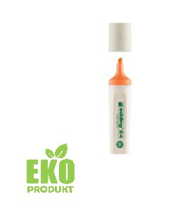Zvýrazňovač Edding se seříznutým hrotem, šíře stopy 2 - 5 mm. Umělohmotné části vyrobeny minimálně ze 70 % z obnovitelné suroviny.
