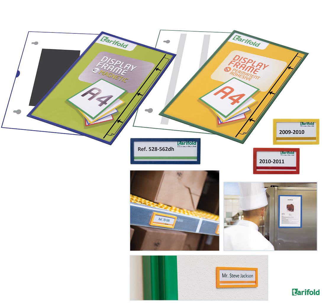Velmi odolné plastové rámečky z ABS plastu. Zadní plocha rámečku je vybavena magnetickým nebo samolepícím proužkem. Lze je umístit kdekoli na hladkou kovovou plochu. Vhodné pro značení regálů, skříní, dveří, apod. Rozměr A4 dodáván po 1 ks, ostatní rozměry v balení po 4 ks.