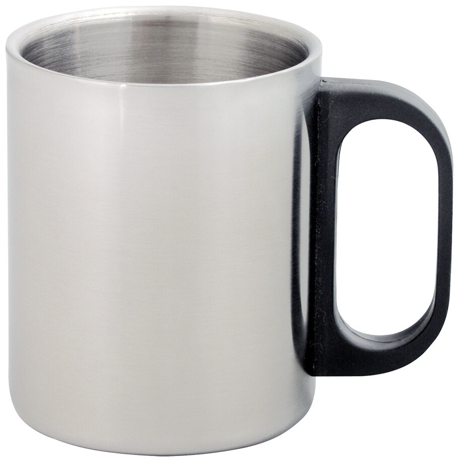 Dvoustěnný nerezový hrnek s plastovým uchem, 175 ml. V dárkové krabičce.