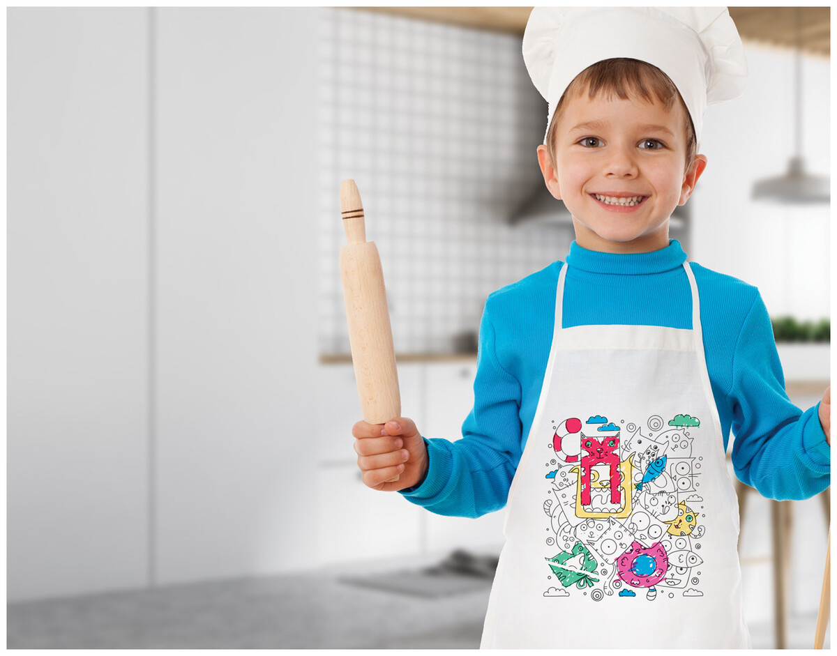 Zástěra pro děti z netkané textilie na vybarvení, s 5 fixami a vyobrazeným daným motivem.