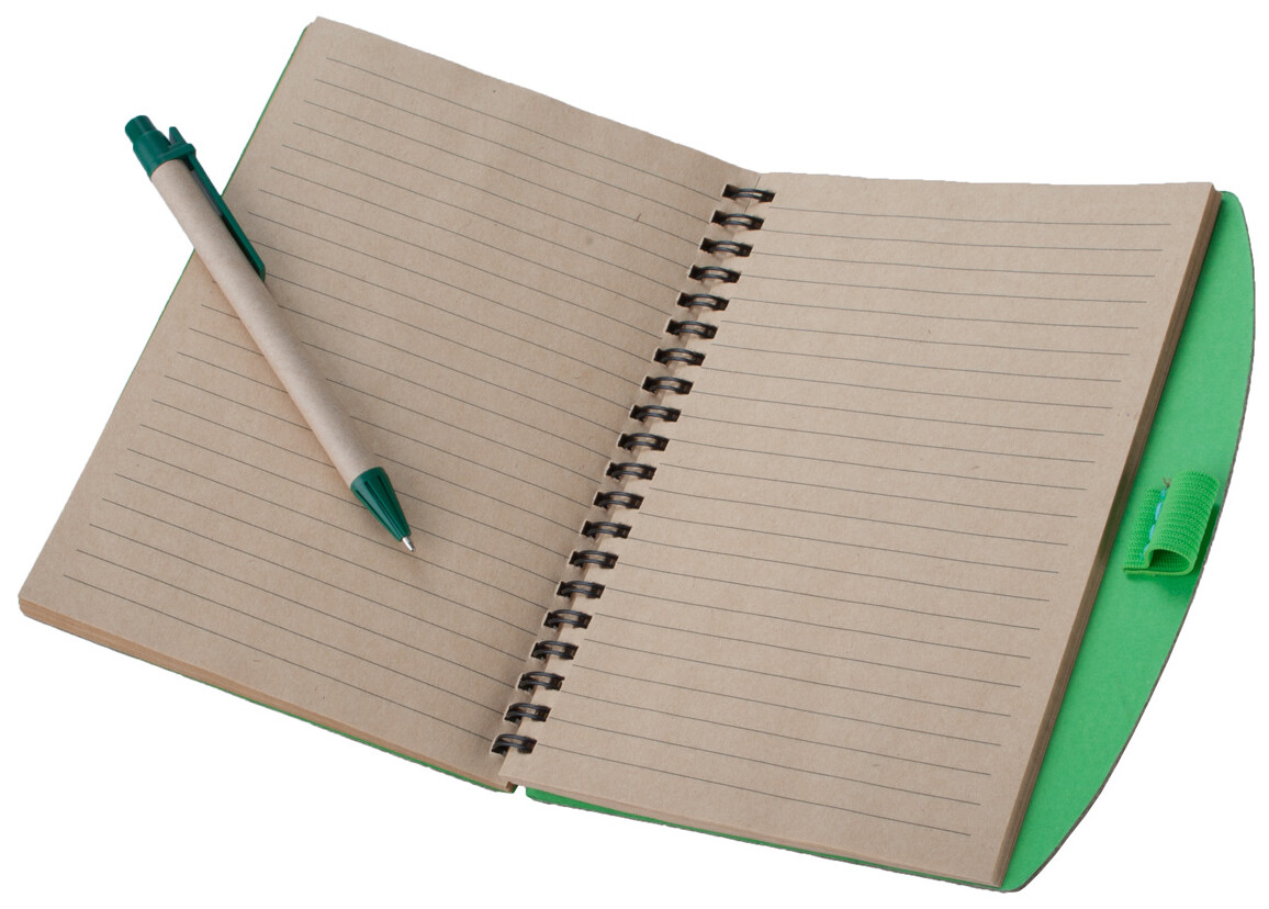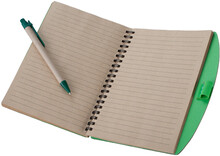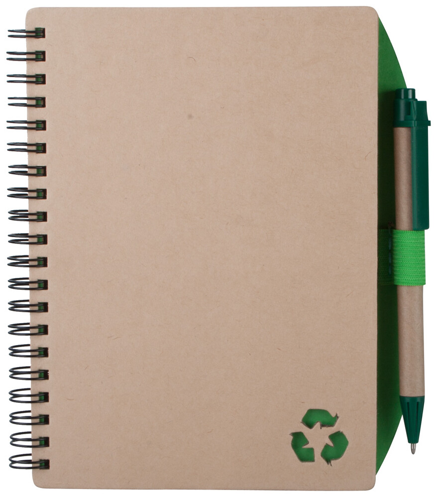 Kroužkový blok z recyklovaného papíru s 80 listy, včetně kuličkového pera s modrou náplní.