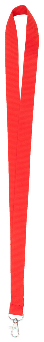 Polyesterový lanyard na krk s kovovou karabinou.