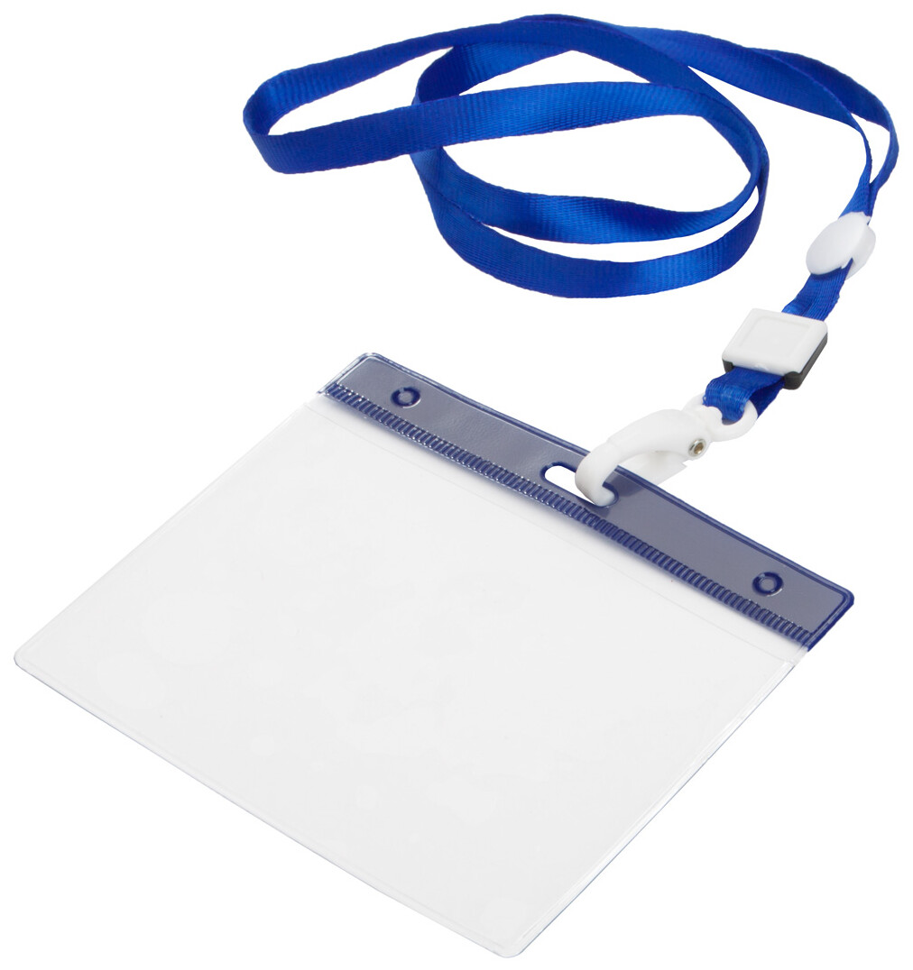 Lanyard s plastovou karabinkou a PVC držákem, polyester.