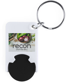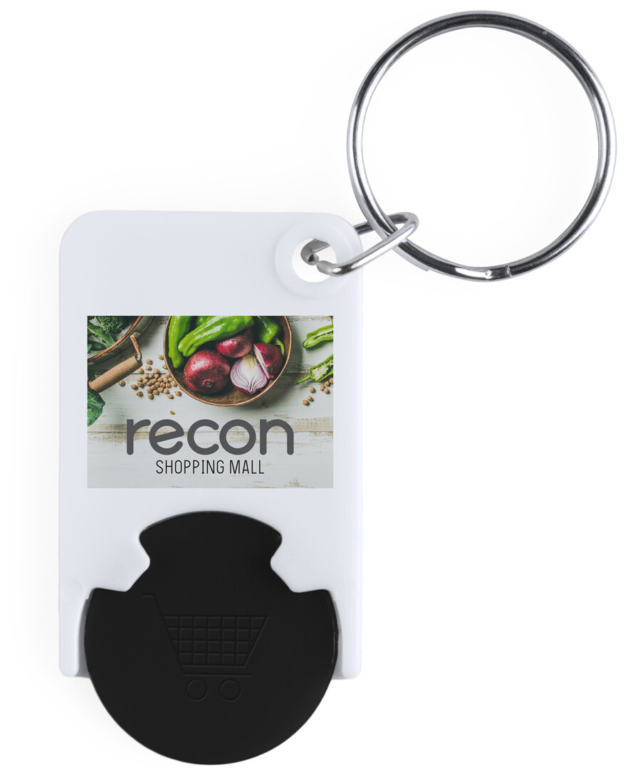 Plastový přívěšek na klíče se žetonem do nákupních vozíků.