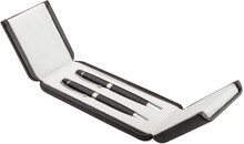 Sada per - elegantní kovové kuličkové pero a roller s lesklým chromovaným zdobením značky André Philippe. V dárkové krabičce z PU kůže a s modrou náplní.