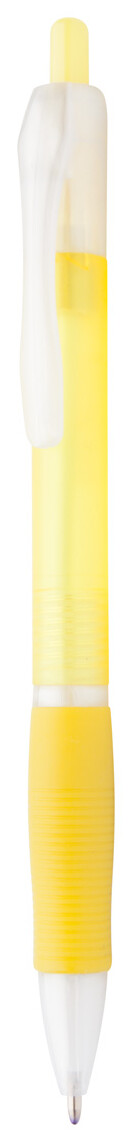 Plastové kuličkové pero s pogumovaným gripem a s modrou náplní.