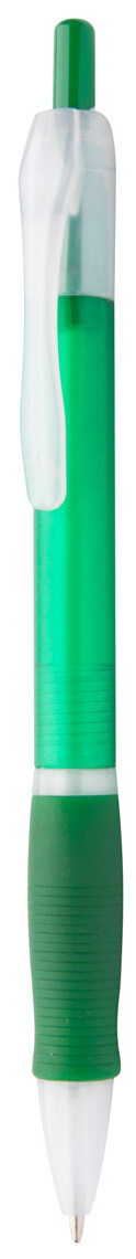 Plastové kuličkové pero s pogumovaným gripem a s modrou náplní.