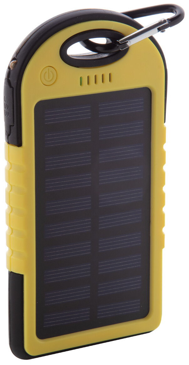 Plast/silikonová power banka s 4000 mAh baterií, solárním nabíjením a 1 LED diodou. Dodáváno vč. USB mikro kabelu.