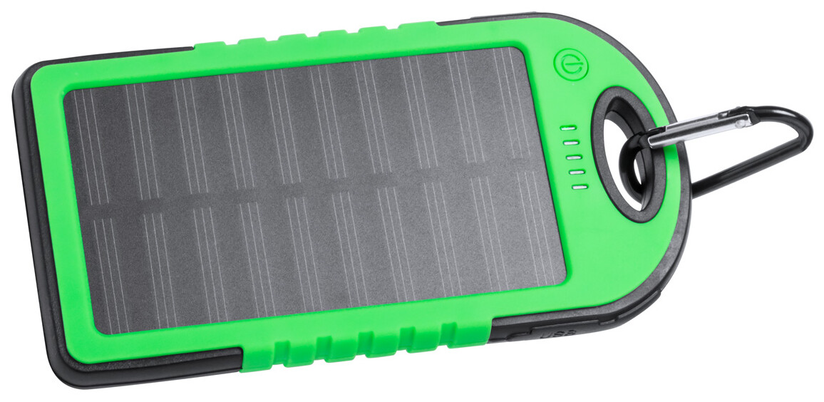 Plast/silikonová power banka s 4000 mAh baterií, solárním nabíjením a 1 LED diodou. Dodáváno vč. USB mikro kabelu.