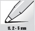Pernamentní popisovač, seřízlý hrot, použití na dřevo, kov, sklo, atd., šíře stopy 2-5 mm, jednotlivé kusy jsou samostatně zabaleny.