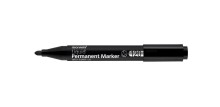 Permanentní popisovač s tekutým černým inkoustem, má až 3 x delší výdrž než běžný, dobře drží na savých i nesavých površích, kulatý hrot 2 mm, kulaté tělo. Výhodou tekutého inkoustu je - vizuální a sluchová kontrola stavu inkoustu, sací vlastnosti 100% do poslední kapky inkoustu jako např. u kuličkového pera - možnost nepřetržitého psaní v jakékoliv poloze.