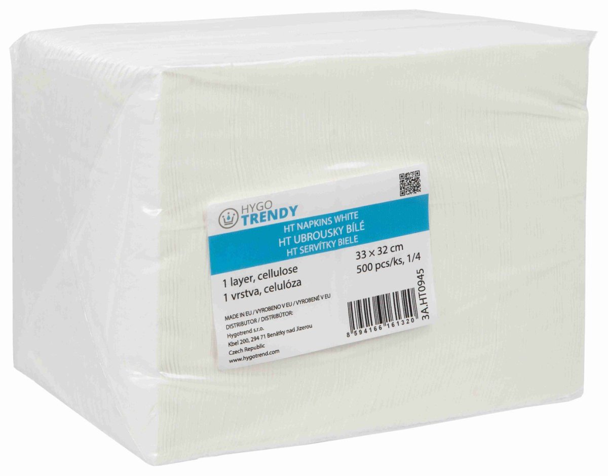 Kvalitní 1vrstvé bílé ubrousky z celulózy vhodné do všech gastro provozů. Sklad 1/4, 500 ks v přebalu. Měkké a příjemné na dotek. Pevné a savé.