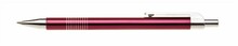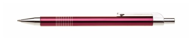 Kuličkové pero LAURIA je vyrobeno z hliníku. Má červené tělo se stříbrnými doplňky jako jsou špička, klip a cvakátko. Úchopová část má 10 stříbrných proužků po celém obvodu tužky. Náplň- X20, modře píšící.