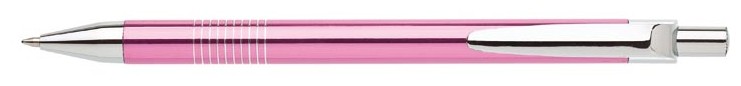 Kuličkové pero LAURIA je vyrobeno z hliníku. Má růžové tělo se stříbrnými doplňky jako jsou špička, klip a cvakátko. Úchopová část má 10 stříbrných proužků po celém obvodu tužky. Náplň- X20, modře píšící.