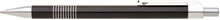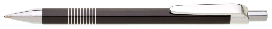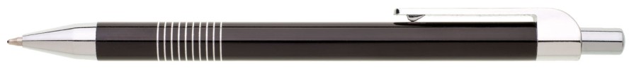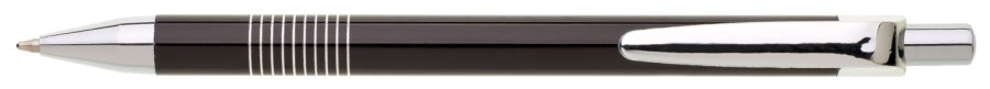 Kuličkové pero LAURIA je vyrobeno z hliníku. Má černé tělo se stříbrnými doplňky jako jsou špička, klip a cvakátko. Úchopová část má 10 stříbrných proužků po celém obvodu tužky. Náplň- X20, modře píšící.