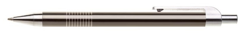 Kuličkové pero LAURIA je vyrobeno z hliníku. Má šedé tělo se stříbrnými doplňky jako jsou špička, klip a cvakátko. Úchopová část má 10 stříbrných proužků po celém obvodu tužky. Náplň- X20, modře píšící.
