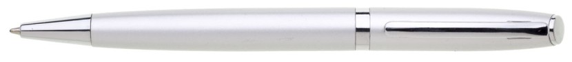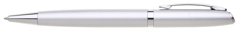 Hliníková propiska TORICO s otočným mechanismem v barvě matně stříbrné a lesklými stříbrnými doplňky. Náplň velkoobsahová, modře píšící.