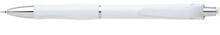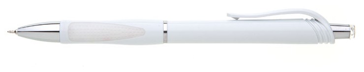 Bílá, plastová propiska s pochromovanými doplňky jako jsou klip, tělo cvakátka a proužek uprostřed těla tužky. Grip je částečně pogumovaný v barvě tužky, stejně jako klip a vrchní část cvakátka. Náplň X20, hrot 0,5mm.