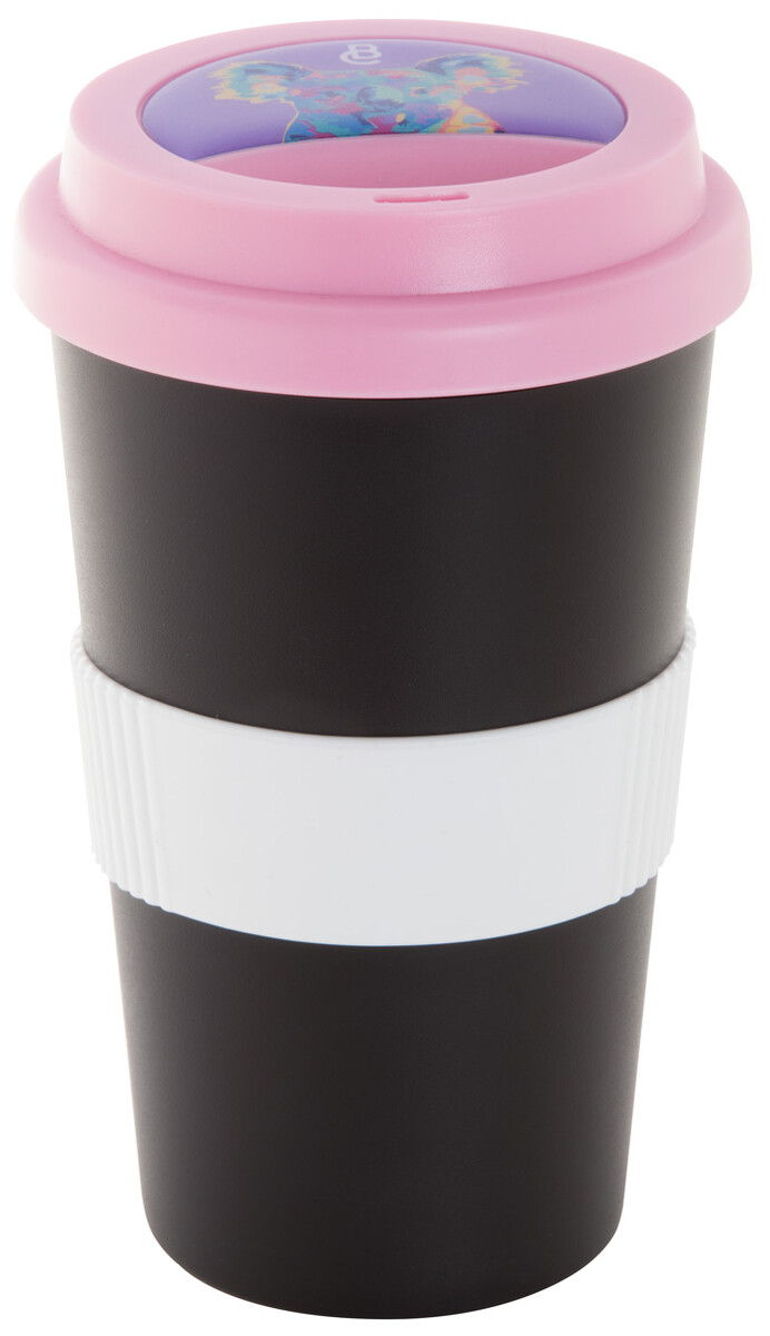 Dvoustěnný plastový termo hrnek s víčkem na pití a silikonovým úchopem na zakázku. 400 ml. Min. mn.: 50 ks.