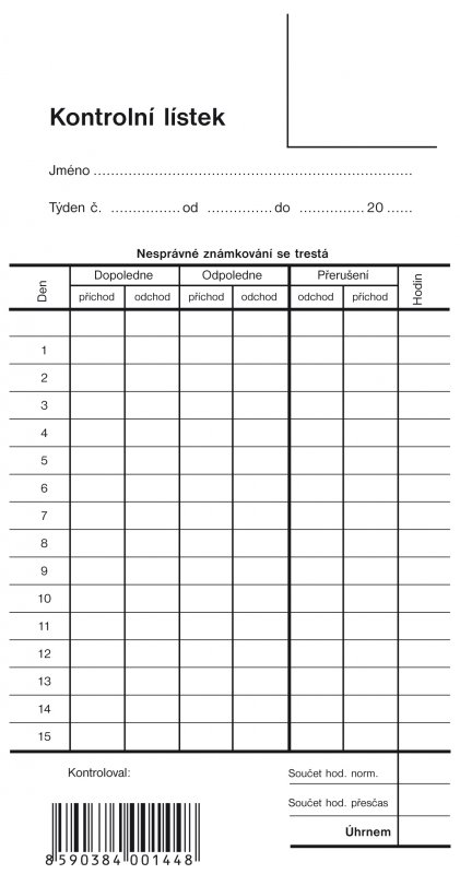 | OPT-1144 | KONTROLNÍ LÍSTEK - PÍCHAČKA | 3,52 Kč | 4,26 Kč | 100 ks | |||