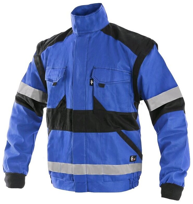 Pánská montérková blůza, odepínací rukávy s pružnou manžetou, kryté zapínání na zip a suché zipy, náprsní kapsy s klopami, skrytá náprsní kapsa na zip, jednoduché boční kapsy, pas na bocích do gumy, reflexní pruhy.