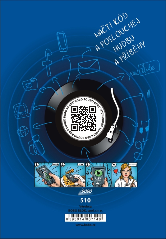 Školní sešit číslo 510 v klasickém designu o velikosti A5. Sešit obsahuje 10 listů, které jsou nelinkované,čisté. Papír je bezdřevý, tedy vyrobený z vláken neobsahující dřevní hmotu. Výhodou sešitů BOBO BLOK oproti jiným značkám sešitů je jejich gramáž. Sešity BOBO BLOK mají 70g/m2 což zaručuje vyšší pevnost v ohybu i v tahu; vyšší gramáž zajistí menší průsvitnost a lepší kvalitu psaní.