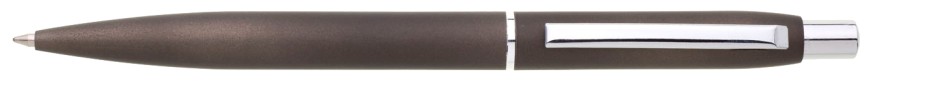 Kovová hnědo-bronzově pogumovaná propiska se stříbrnými doplňky a efektem lesklého stříbrného laseru.