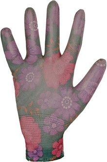 Pletené bezešvé rukavice s potiskem, dlaně a prsty povrstveny polyuretanem, pružná manžeta. Baleny s blistrem.