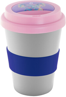 Dvoustěnný plastový termo hrnek s víčkem na pití a silikonovým úchopem na zakázku. 300 ml. Min. mn.: 50 ks.