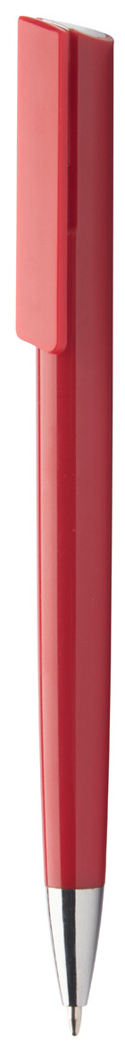 Plastové kuličkové pero s chromovou špičkou a vrškem, s modrou náplní.
