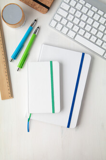 Blok se 100 čistými listy v papírových deskách a barevnou gumičkou, A5.
