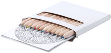 Mandala set na vybarvení s barevnými pastelkami a 12 listy mandala designu.