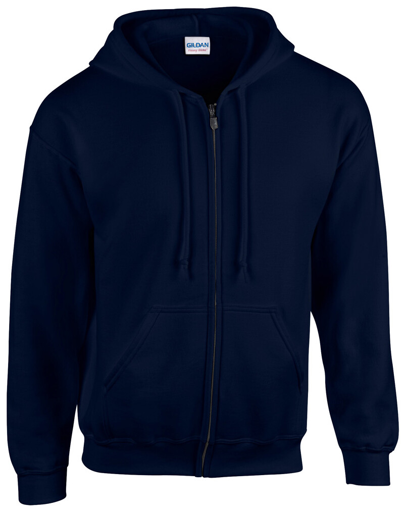 Mikina 50% bavlna / 50% polyester s kapucí, kovovým zipem a předními kapsami, 271 g/m2 (bílá 257 g/m2). Produkt značky Gildan.
