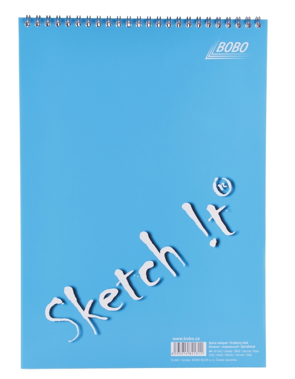 Blok s horní vinutou spirálou, 40 listů. Formát: A4, čistý.