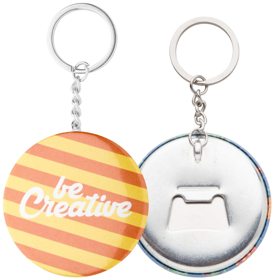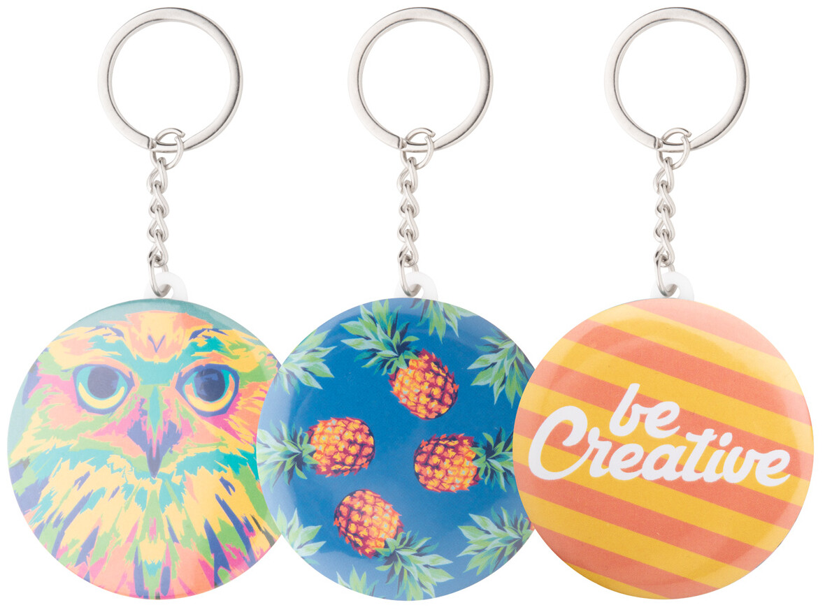 Přívěšek na klíče s velkou plackou a otvírákem na láhve s plnobarevně potištěným vloženým papírem. Cena zahrnuje digitální tisk, nezahrnuje tiskovou přípravu. Min. mn.: 100 ks.
