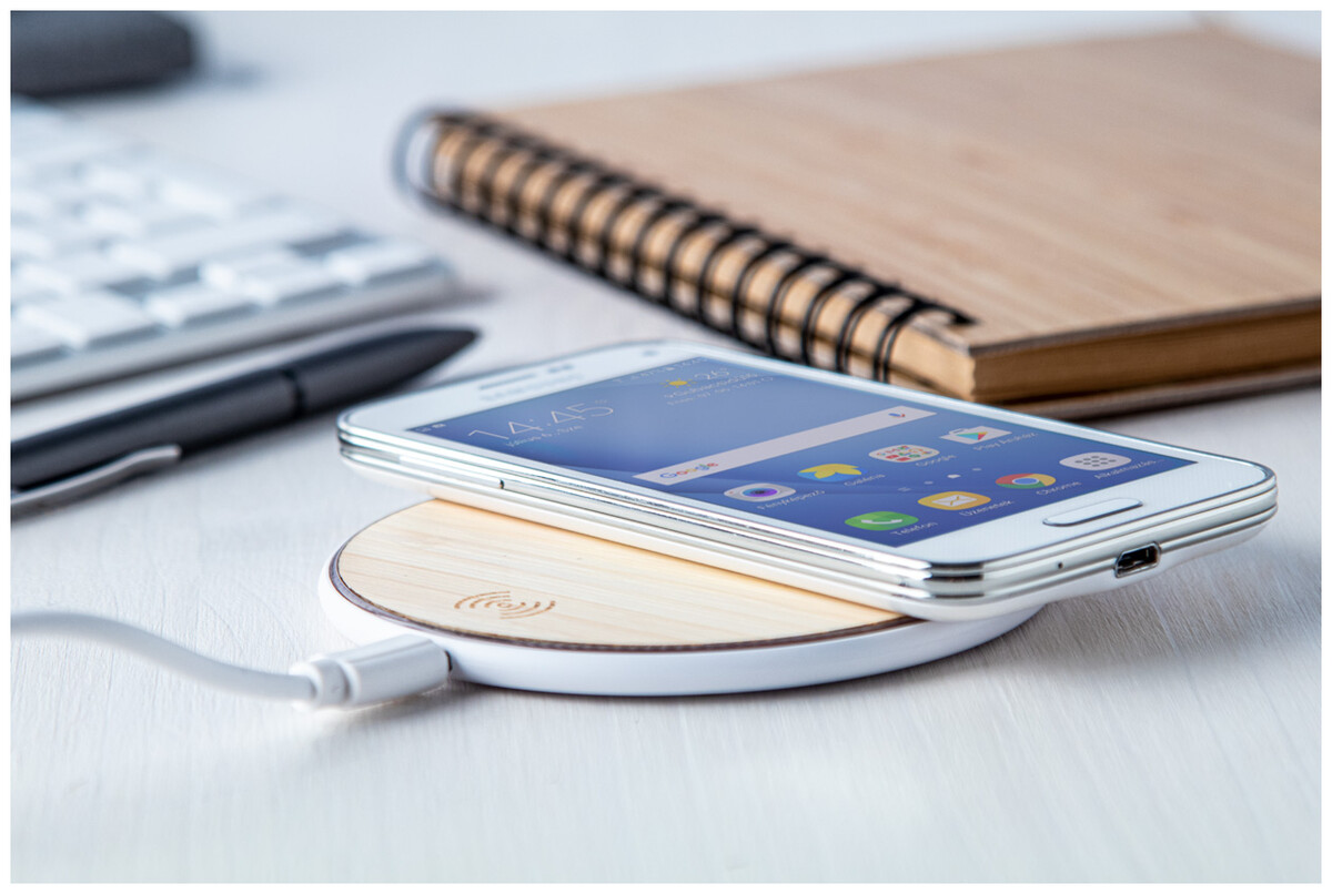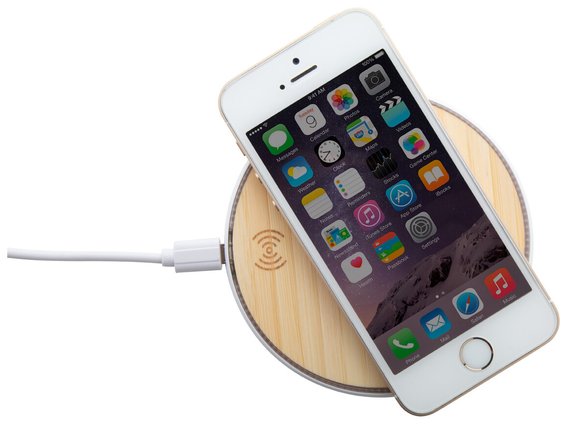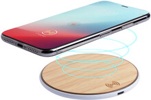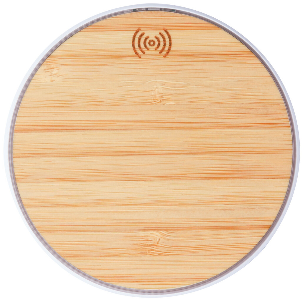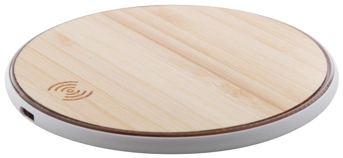 Bezdrátová nabíječka (10W) na mobil s bambusovým krytem. Vč. USB nabíjecího kabelu.