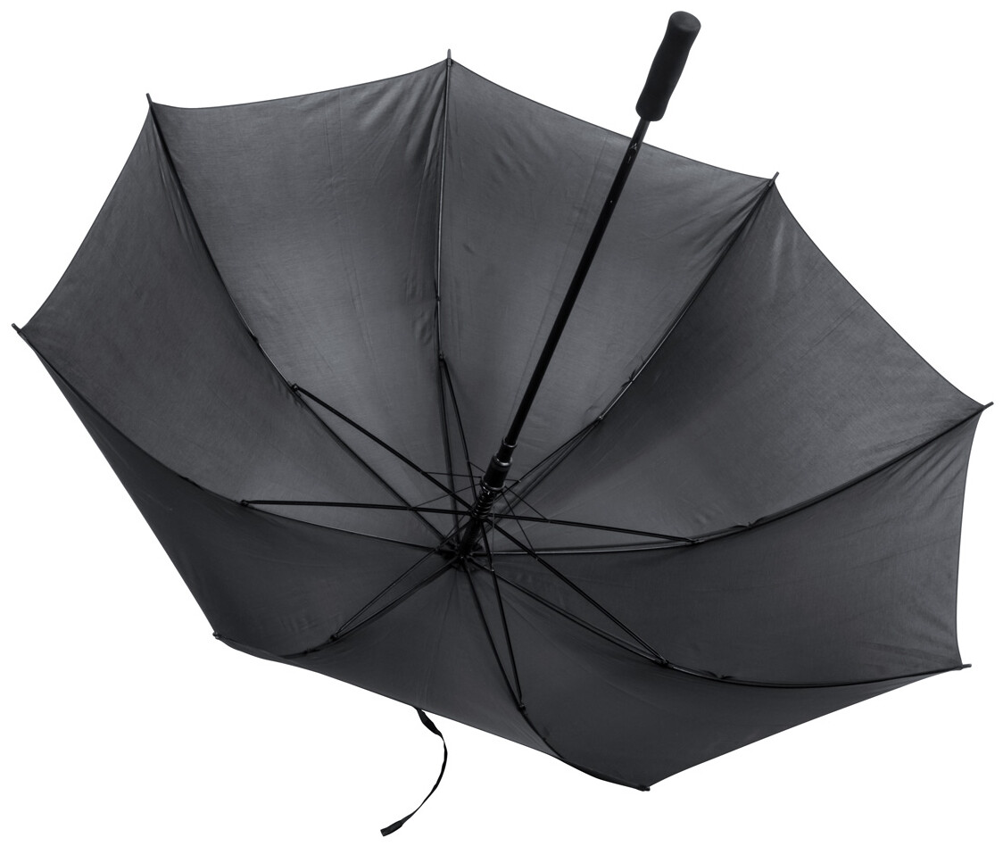 Velký, automatický větruodolný deštník s 8 panely, kovovou tyčkou a rámem, ABS žebry a rukojetí z EVA pěny, 190T polyester.