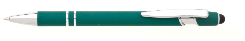 Propiska s touch koncem, měkkým pogumovaným soft povrchem v zelené barvě a stříbrnými doplňky včetně dvou ozdobných kroužků. (NATIO)