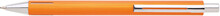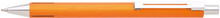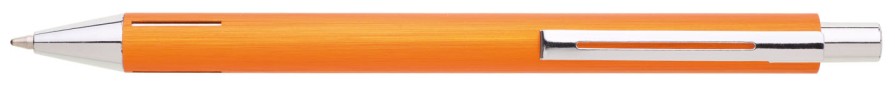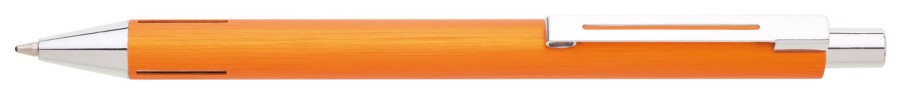 Elegantní hliníková propiska s jemně rýhovaným, oranžovým povrchem a stříbrnými doplňky.