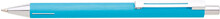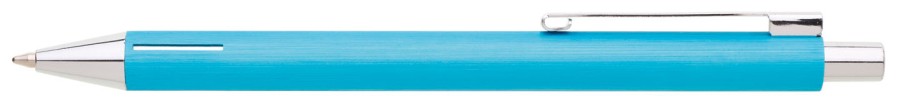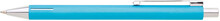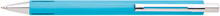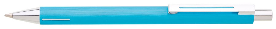 Elegantní hliníková propiska s jemně rýhovaným, tyrkysovým povrchem a stříbrnými doplňky.