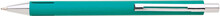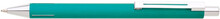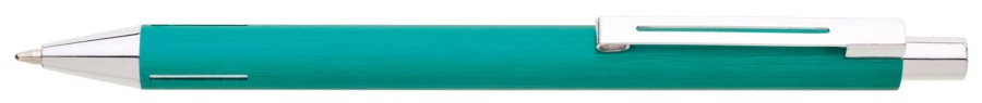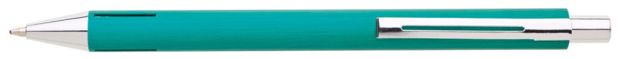Elegantní hliníková propiska s jemně rýhovaným, zeleným povrchem a stříbrnými doplňky.